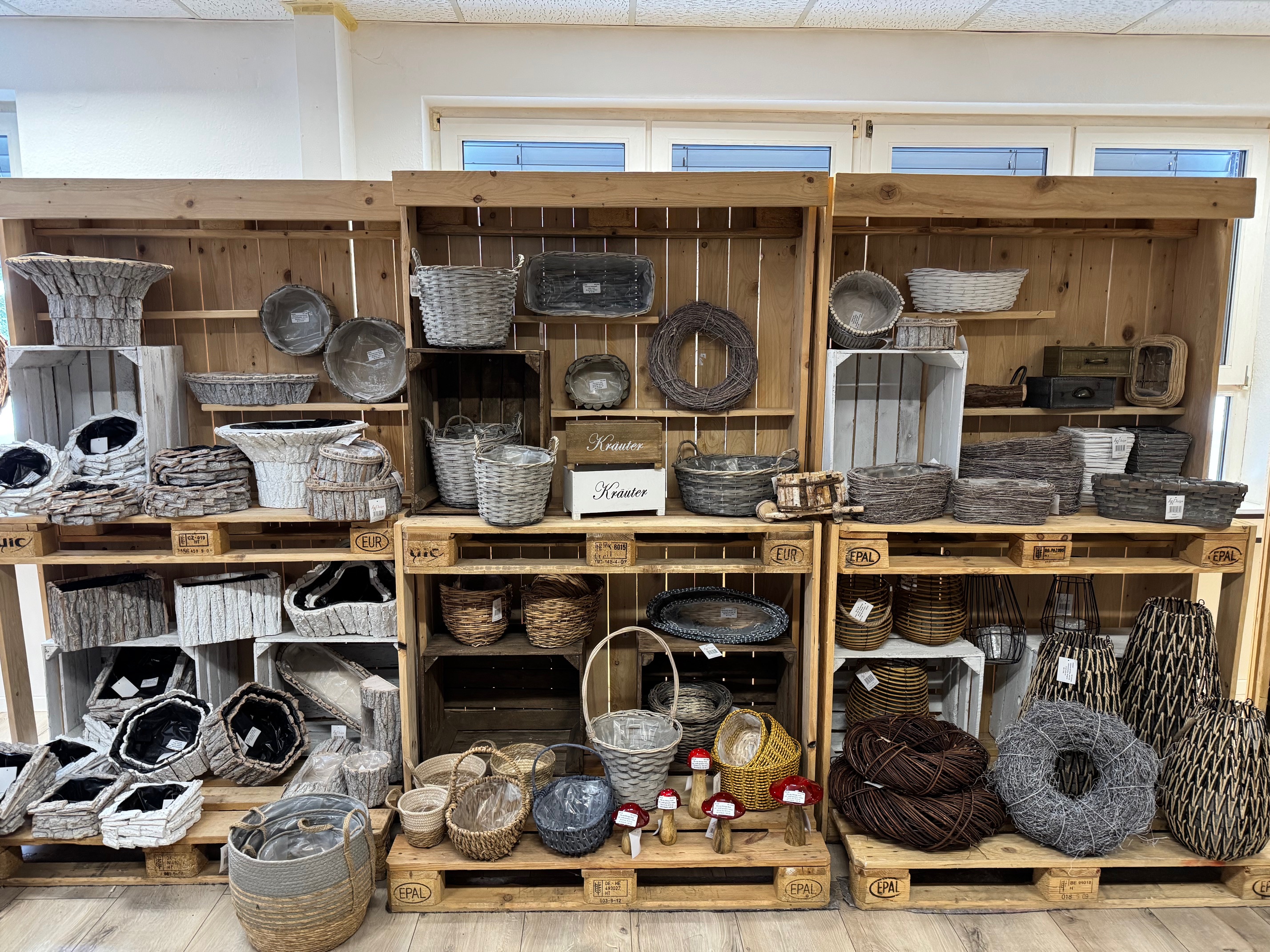 IMPORTEUR FÜR KORBWAREN & PFLANZGEFÄSSE, HOLZPFLANZGEFÄSSE, KRÄNZE, BLUMENSTECKER, KLEINMÖBEL, DEKOARTIKEL, TRAUERARTIKEL UVM.
